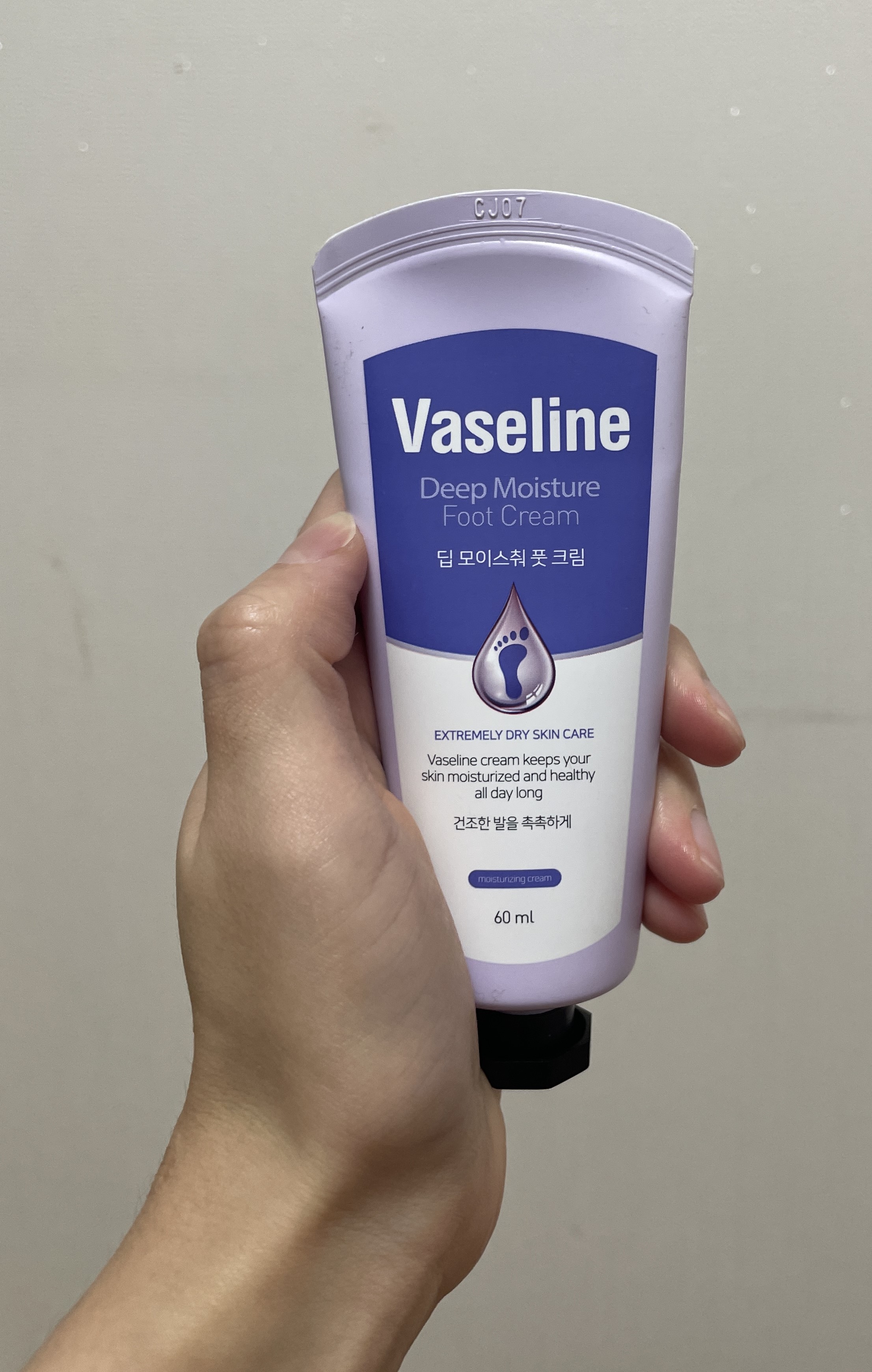손에 조금씩 더 짜서 뒤꿈치에 더 발라줬어요. 굳은살 없어지길