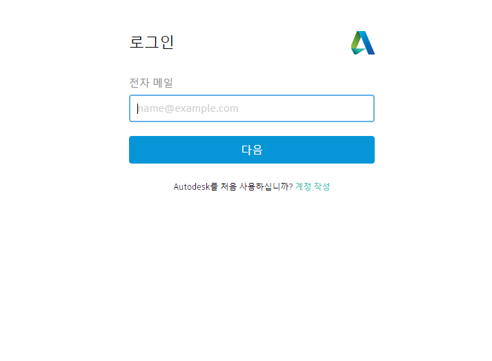 오토데스크 로그인 해줍니다. 계정이 없다면 계정작성해서 만들어 줍니다.