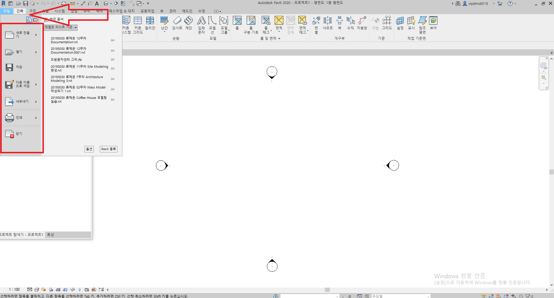 드디어 Revit 2020프로그램 설치가 완료 됐다면 열어주세요.