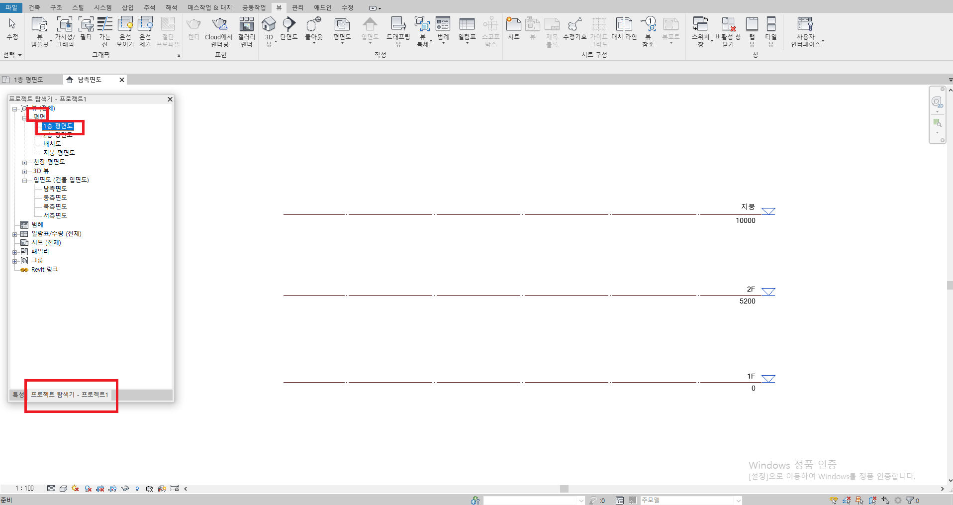 제일먼저 [프로젝트 탐색기]에서 '평면'>>'1층 평면도'를 열어줄게요.