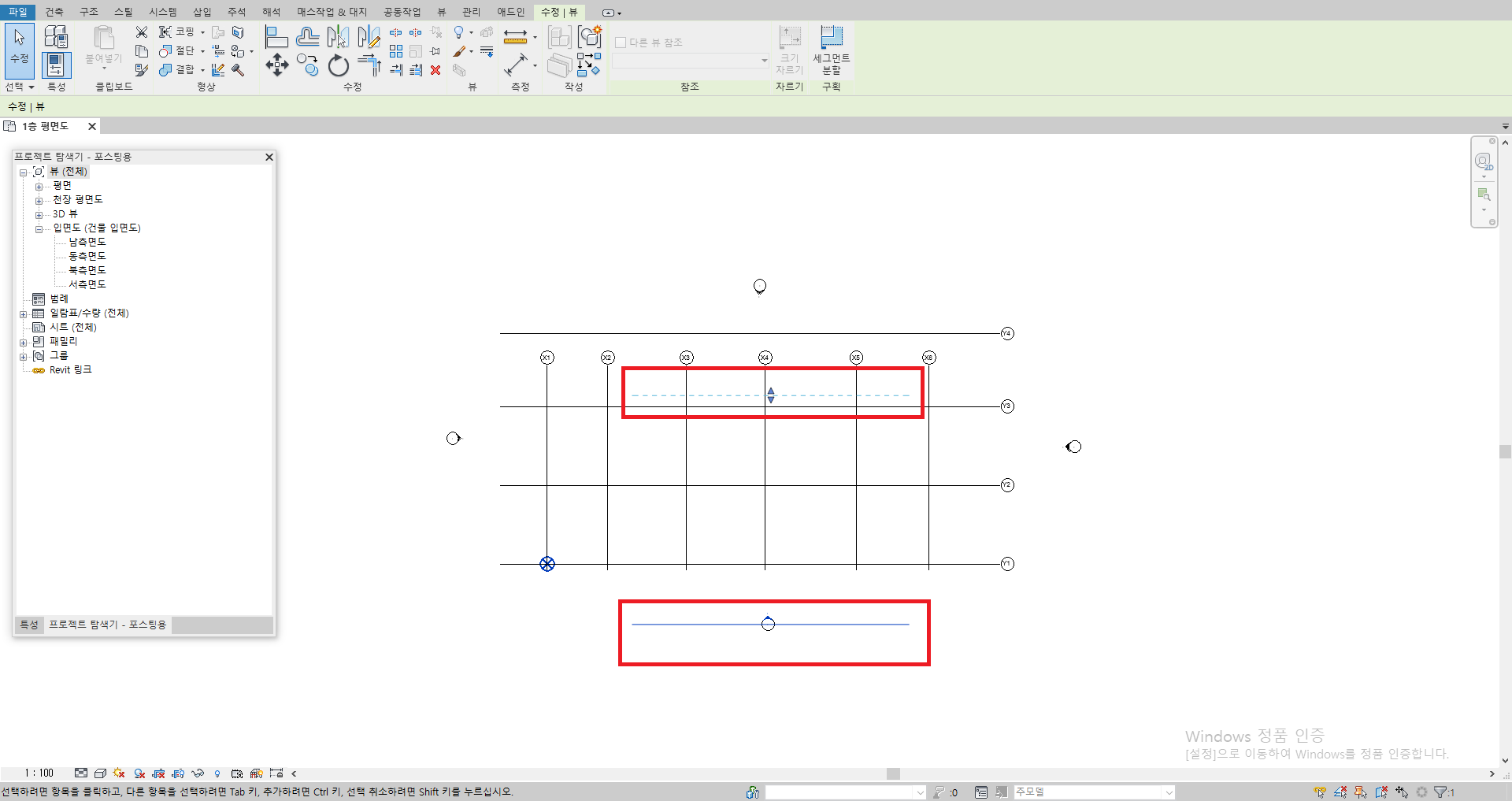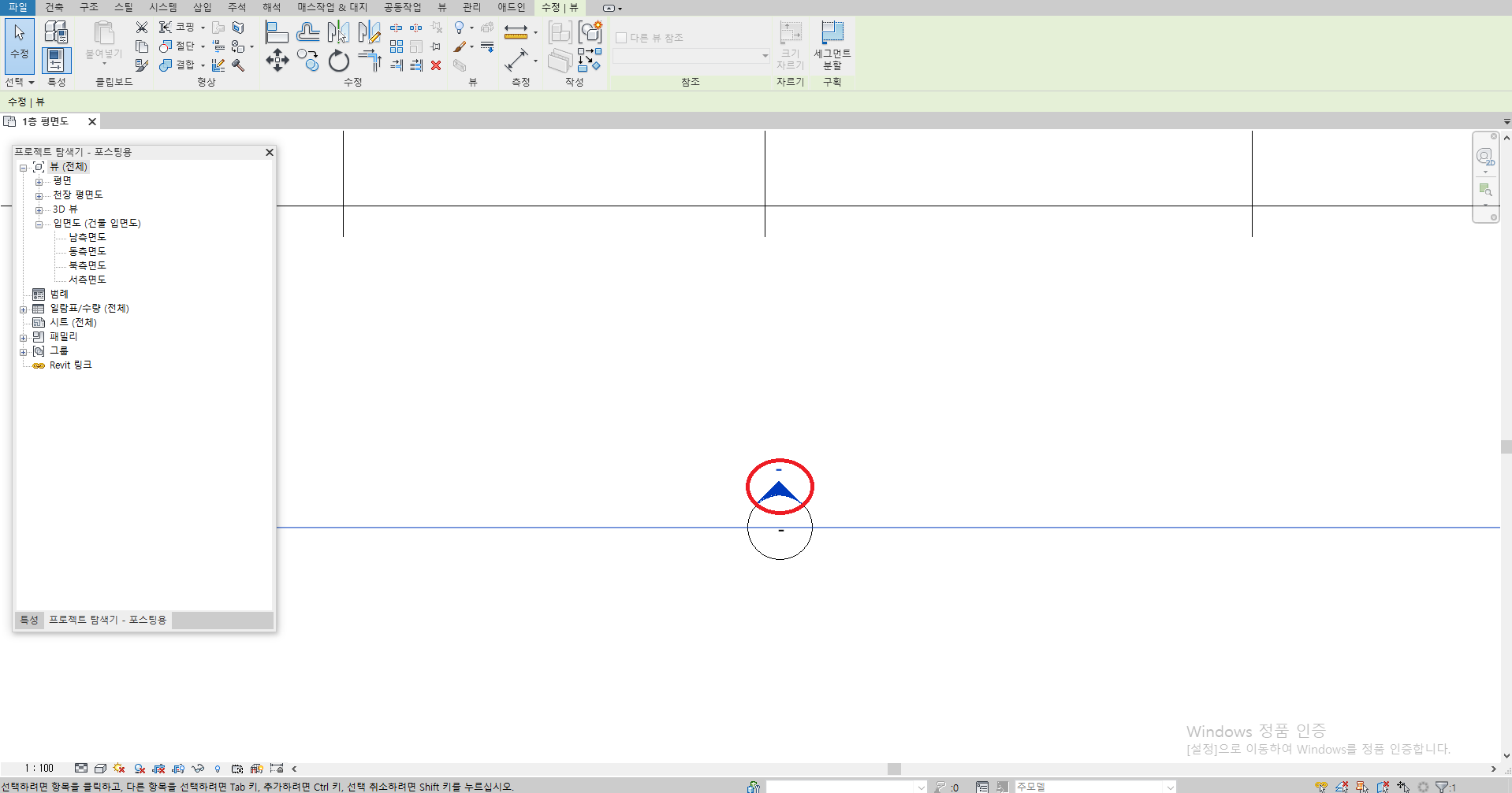 [프로젝트 탐색기]에서 남측면도 '입면 뷰'를 더블 클릭하여 남측면도를 활성화 시켜줍니다.